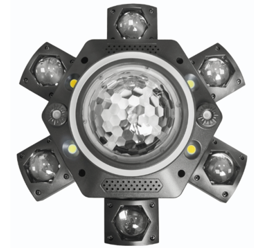 Это флагманский эффект-прожектор, объединяющий самые передовые технологии в одном корпусе для максимального визуального воздействия. Модель сочетает в себе гибридную светодиодную систему (6x10Вт + 1x15Вт CREE RGBW) для создания мощного, гибкого луча, 23 магические световые ленты для объемного свечения корпуса, а также лазеры и стробоскопы для акцентов. С управлением по 26 каналам DMX512, этот прибор представляет собой универсальную сценическую станцию, способную выполнять функции заливки, акцента, проекции объемного свечения и лазерных эффектов одновременно, делая его идеальным решением для самых требовательных профессиональных шоу.