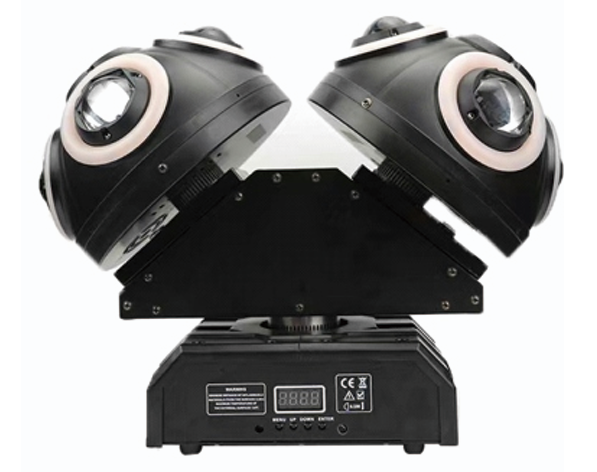 Этот сканер представляет собой эволюцию кольцевой технологии, в которой реализованы полноцветные программируемые RGB-кольца, созданные на основе светодиодов 5050. В сочетании с мощным узким лучем от восьми 10-ваттных RGBW-диодов и красно-зелёной лазерной системой, прибор становится универсальной творческой платформой. Его уникальность — способность создавать сложные, многоцветные и анимированные кольцевые структуры, которые могут независимо от основного луча менять цвет, формировать градиенты, бегущие волны или статичные узоры, открывая беспрецедентные возможности для светографического дизайна.