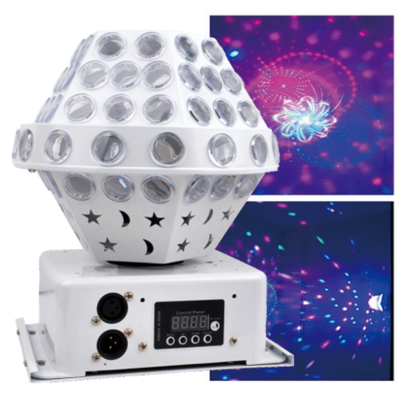 - Профессиональная универсальность управления. Несмотря на скромную мощность, прибор поддерживает все стандартные режимы: реакция на звук, авто-программы и полный контроль по протоколу DMX512.