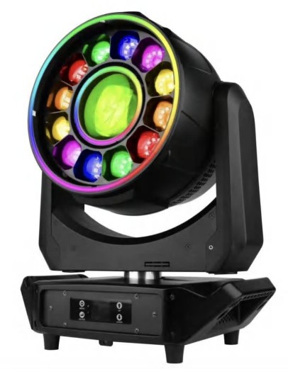 - Тип и конфигурация: 12 x 40W RGBW 4-in-1 LED, расположены кольцом